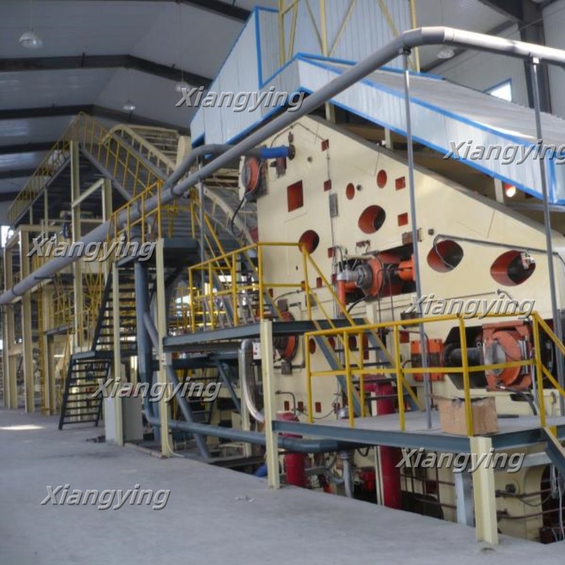 Feed the wood pieces into the boiling apparatus evenly to cook and soften through squeezing and dewatering after transferring them into the defiberator pre-heating bins/humidifying bins by the transferring equipment in order to separate the fiber easily.The cooked wood pieces will be separated to fibers under the forces of heat and machine. Then mix the wet fibers and heated dry medias ,and keep the fibers suspending in the dry medias under the high speed force of the high-pressure air flow, and the moisture in the fibers will be taken away by the dry media. Afterwards ,the fiber will drop under the force of cyclone separator onto the reversible belt conveyor to be transferred to the pavement bins for temporary storing.